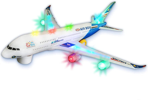 ToyVelt Kids airplane A380 toy plane self driving bump & go Airbus - Contains Beautiful 3D Light and Jet engine - Changes Direction On Contact - For boys & girls age 3 - 8 years old