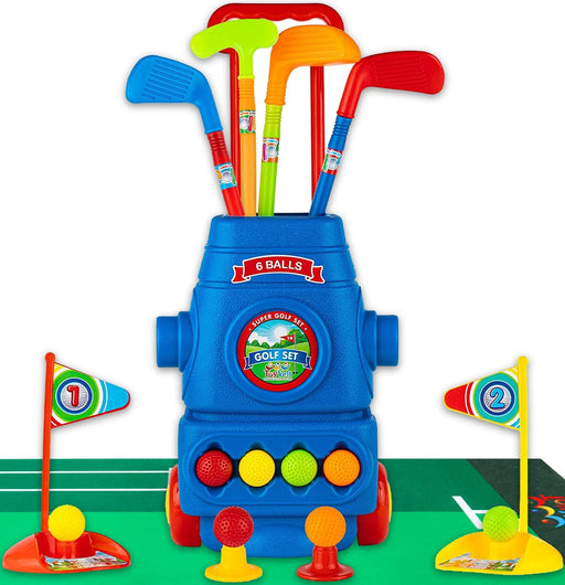 Toyvelt Kids Golf Club Set Golf Cart With Wheels, 4 Colorful Golf Sticks, 6 Balls & 2 Practice Holes Fun Young Golfer Sports Toy Kit For Boys &Girls Promotes Physical & Mental Development 2020 Edition